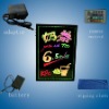RGBMagic led writing board specification:Magic led writing board can work in nights and days. Especially Dazzling in dark environment. It is most often used in restaurants, shopping mall, coffee shops, bars, or night clubs and very public places, they are ideal for advertising daily specials, drink specials, upcoming events or promotions. It could attract consumers easily and achieve the goal of promotion.You could write any characters and design graphs with a fluorescent marker pen optionally.Write on and wipe off easily, when the power supply is on, the content on the board will reflect gorgeous colors like different chromatic neon lamps.The fluorescent board adopts safe 12V DC voltage, Power Plug is available for any country lilke EU Plug, AU Plug, UK Plug, etc.Main Specs ofled writing board:Frame Material: Aluminium alloyWriting area: High quality AcrylicLight Source: SMD 5050RGBsuper brigthnessLEDPower Supply AC: 100-240V, DC: 12VLED Lifespan: 50,000 HoursAvailable sizes: 25 X 35cm, 30 X 50 cm,40 X 60cm,50 X 70cm, 60 X 80cmthe size can be customized as customer's requirements.Caution!!Pay attention not drop the water into the LED circuit!!, It might demage to the circuitGuarantee: 1 year from shipping date, we will credit, replace or at your option, This guarantee does not cover failure duo to misuse, damage or fair wear and tear.Package contents:1.Fluorescent Writing Board2. 12V DCAdaptor3.Clearing cloth4. Maker Pen(Optional extra)5. Triangular Easel (Optional extra)6. Instruction